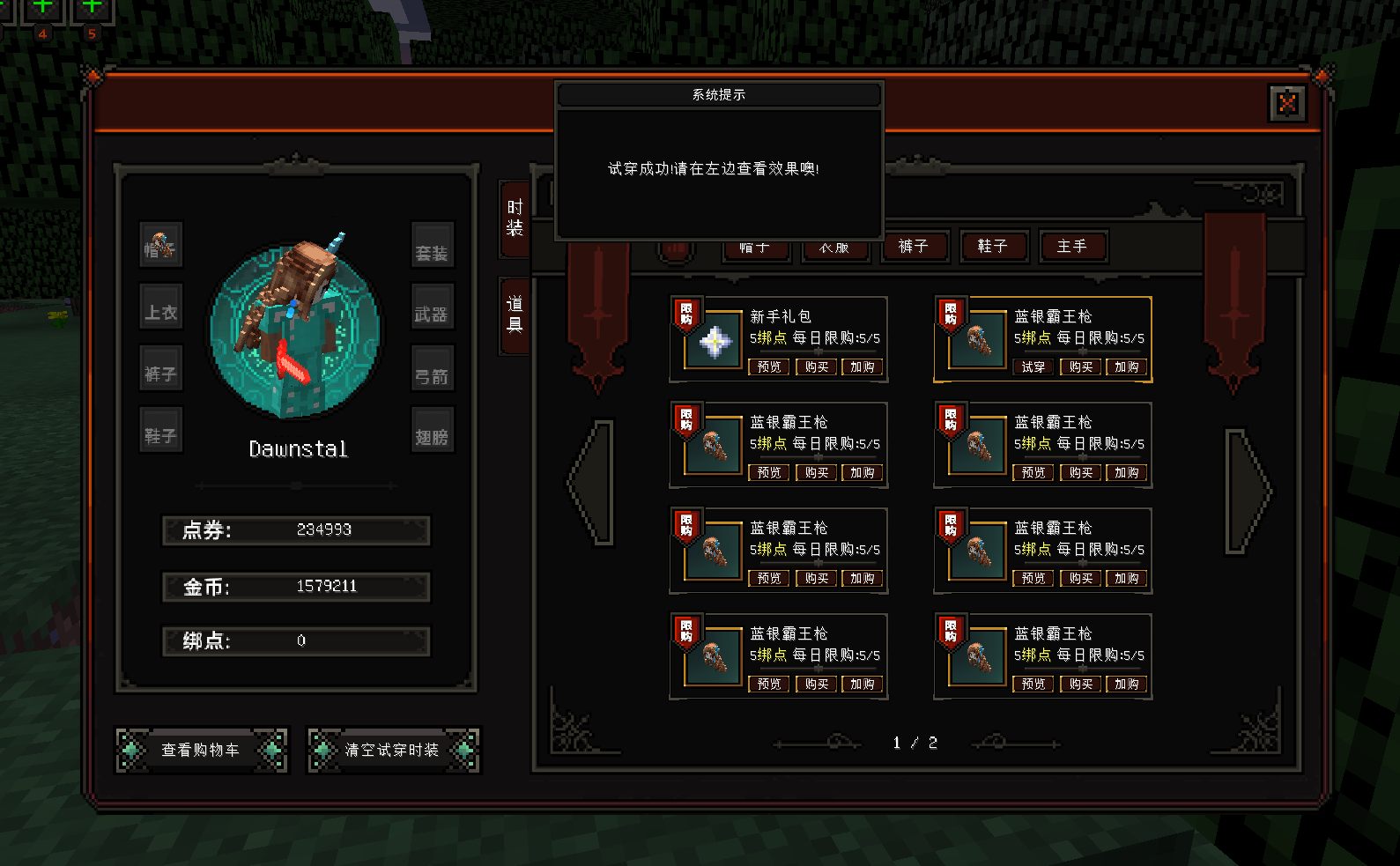 带有礼包预览,时装试穿,优惠券,自定义货币,购物车,多购多优惠更功能