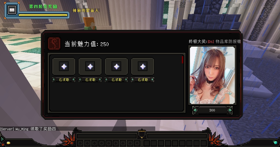 3、达到一定的魅力值,可以领取相对应的奖励(奖励配置表设置)